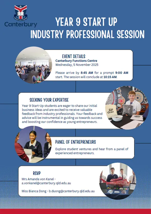 Our Year 9 Start Up students are hosting a networking event and seeking feedback from industry professionals to help them take their business ideas to the next level.
